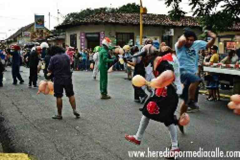 La tradición es bailar y perseguir a las personas armados de vejigas de chancho o de res llenas de agua. Tienen más de 70 años de haber incorporado las mascaradas a esta celebración.