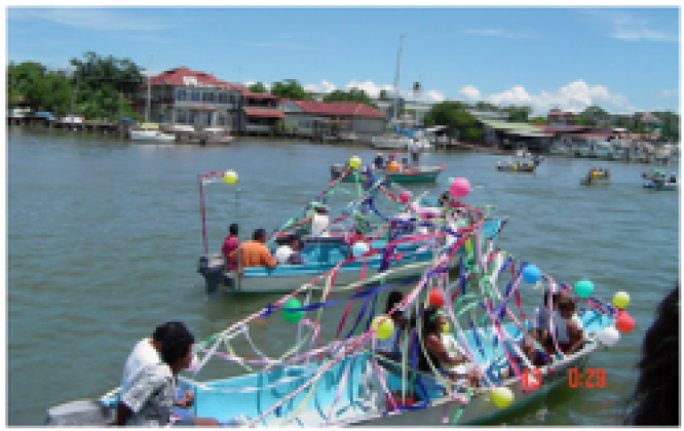 Posteriormente, se trasladaba desde el templo hasta una lancha elegida para el recorrido. La misma era decorada de manera más bonita que el resto de las embarcaciones y encabezaba el desfile.