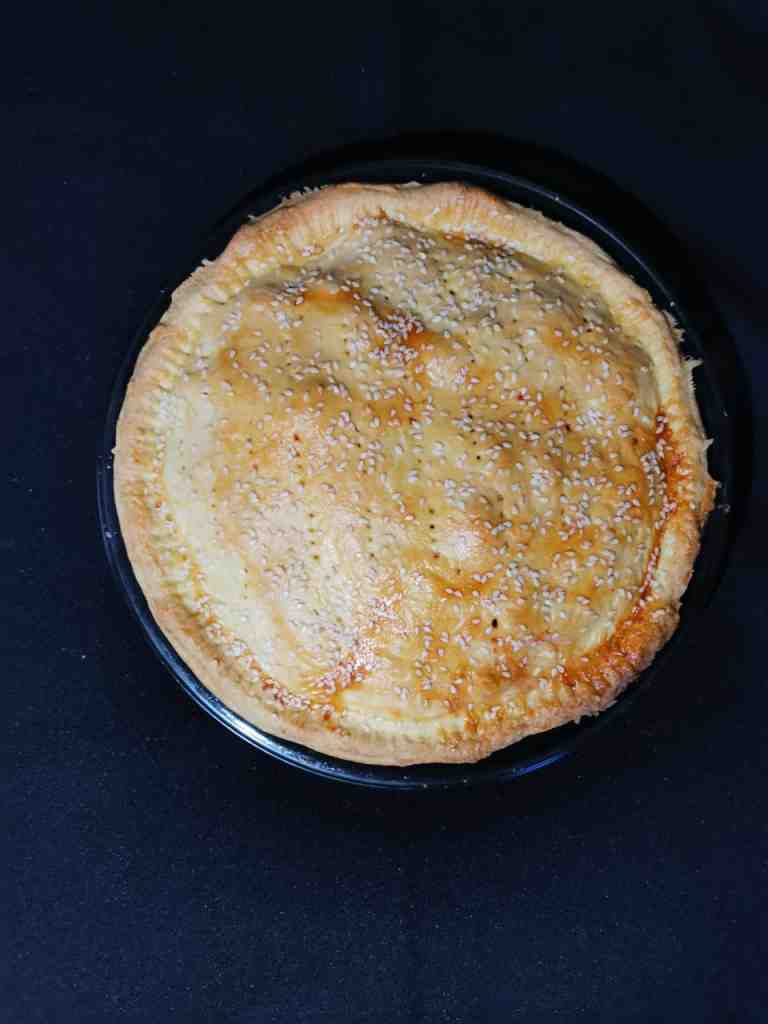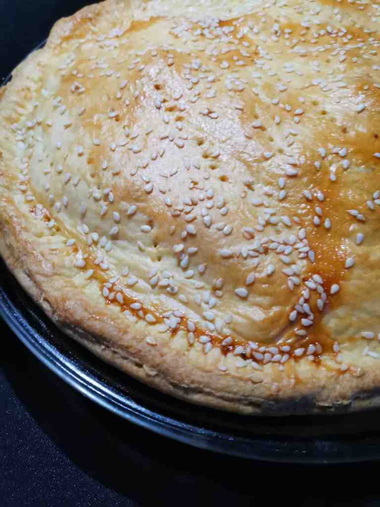 - Para colocar en el molde, se extiende la pasta, se le agrega el relleno y se le pone la margarina en cuadritos, después, con la misma pasta, se pone una capa encima para tapar el pastel, quedando el relleno totalmente cubierto por la pasta, por último, se barniza con huevo y ajonjolí para decorar; uno de mis secretos es hacer huequitos a la pasta para que no se abombe y se hornee mejor.