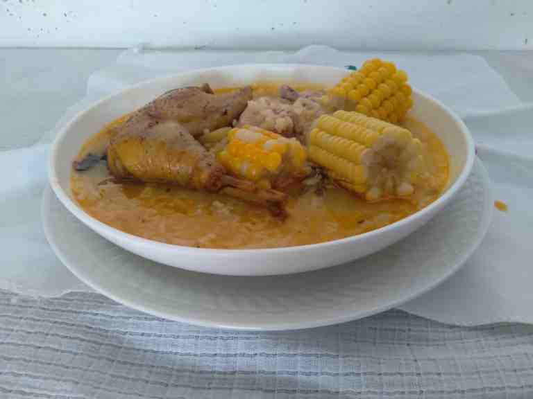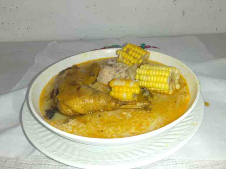 La “Sopa de Guacho de Gallina Casera” la preparé de forma individual. Los ingredientes que lleva son: 2 litros de agua, 1 gallina casera, 2 tazas de arroz, 5 papas, 1 chayote, 1 cucharadita de achiote, 2 elotes, 1 cucharadita de sal, 1 cebolla y 1 rollo de culantro.