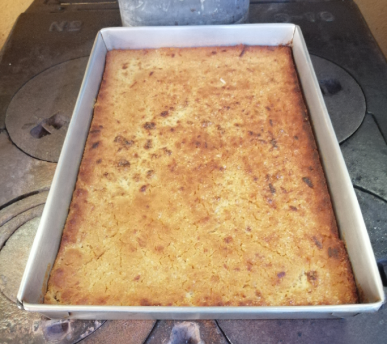 - Finalmente, una vez dorado el tamal, se retira del horno y se deja enfriar, antes de cortarlo en porciones.