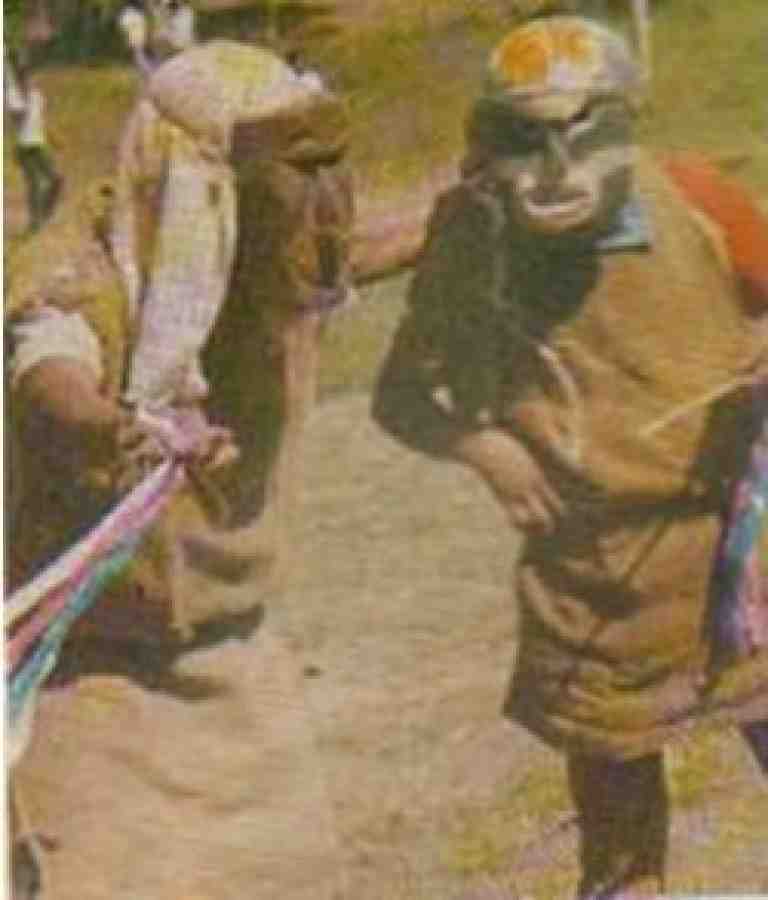 duramente a los “diablitos”, actúan de forma natural y como si la pasión del momento se apodera de ellos, toman el aparato y el Samán̈ muge al enojarse.